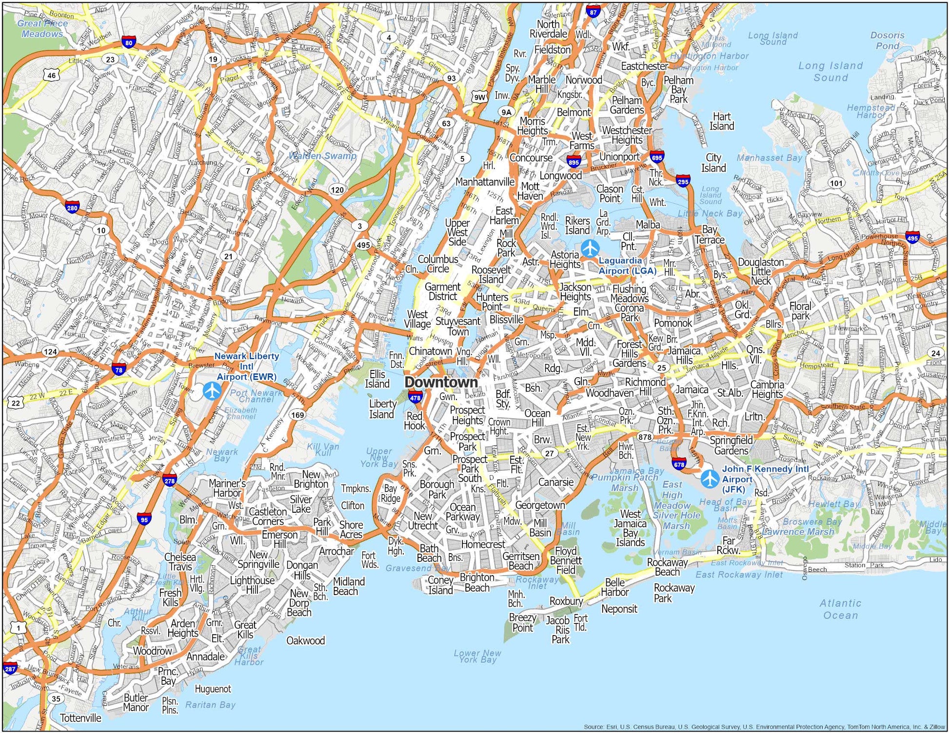 New York Nyc Us Neighborhood Map Glossy Poster Picture Photo Print Banner Conversationprints
