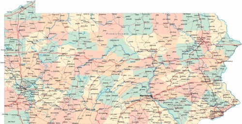Pennsylvania State Road Map Glossy Poster Picture Photo City County Pa Conversationprints